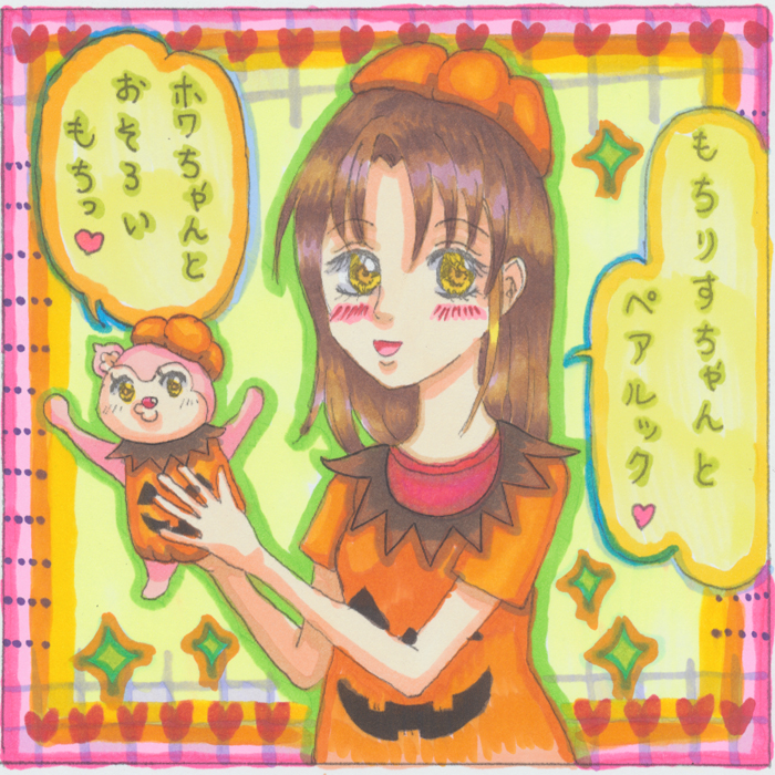 ![]() 2020年5月13日 ![]() 誕生月絵です(^^)/たらこさんから宝物♪ たらこさんはセクシー系が得意だと思うのですが(笑) 可愛いキャラをリクエストしてしまいました(#^^#)/ ちびリス、プニコロ、プーちゃん、もちもちリスちゃんです♪ 愛してますが口癖のちびリスは言ってくださってる~! ちびリスとプニコロがポーンと飛んでます♫ プニコロの体系と髪型がオシャレ(*'▽')☆彡 誕生日だから皆、おしゃれしてハッピームードで楽しいです♪ お目目がキラキラですね、たらこさんの絵だぁ♫ とっても可愛い、デザインも素敵(^_-)-☆ パッと見たとき、とっても華やかだなぁと(^^)/ もちもちリスちゃん、プーちゃん、ちびリスカワ(・∀・)イイ!! プニコロ、可愛いけど面白い(*´▽`*)ノ カラーで頂けるとは!とっても嬉しいです♡ 水彩で色つけてくださってる!大変でしたよね! 水彩好きですよぉ(^^♪きれいです~( *´艸`)/ 可愛いの大好きな私にはとっても嬉しい絵ですよ♪ たらこさん、ありがとうございました(*- -)(*_ _)ペコリ とっても、とっても、嬉しいです!! 2019年12月21日 ![]() 美少年、美少女のクリスマス♪ たらこさんからクリスマスコラボ絵です(^_-)-☆ たらこさんのチャッピー(^^♪ 桃木 桃乃さんの名無しさん、キラ☆彡 めぐるちゃんのクロ君、可愛い♡ コバルトちゃんのみどりちゃん(^^)/ もちもちリスちゃん、もちもち(⋈◍>◡<◍)。✧♡ ★絵のお話★ みどりさん「わぁー、りすちゃんだ~♥」 もちりすちゃん「もちち~♥」 クロ君になついているのでクロ君を見つめる。 クロ君「りすちゃん、どうしたの?」 「ケーキ欲しいの?」 ナナシ君「メリークリスマス✌」 ------------------------------- 絵のみんなが凄く可愛いですね( *´艸`)/ もちもちリスちゃん可愛いですね♥ 名無しさん、ウインクして格好良いです♪ クロ君、可愛すぎです(笑)本当に可愛い♡ ケーキも美味しいそうですね(#^^#) みどりちゃんはもちもちリスちゃん持って… クリスマスの髪飾りが可愛いですね♡ もちリスちゃんはこうやって持ってみたい(*´з`) じーって見つめられてもみたい…(*‘ω‘ *)♪ ぱっちりお目目とお鼻が可愛いのですが(●´ω`●)ノ チャッピーが真ん中にちょんっている(笑) チャッピーもいてくれて嬉しいです♪ 改めて見てみるとやっぱり皆可愛いです、キラ☆キラ クリスマス楽しそうだぁ(∩´∀`)∩ たらこさん、素敵な可愛い絵、ありがとうございます(o*。_。)o 2020年10月22日 ![]() たらこさんから、もちもちリスちゃんとホワちゃんの ハロウィンのカボチャの服の可愛いイラストを頂きました♪ とっても可愛いですね、もちもちリスちゃん!!! ホワちゃんもお目目がキラキラで美し可愛いのです、ハゥ♡ もちもちリスちゃんとペアルック♥したいです♥♥♪ とっても可愛い絵だったので たらこさんにお願いして色を付けさせてもらいました♪ ![]() カラーになった、もちもちリスちゃんとホワちゃん(笑) コピックでわくわくしながら、塗りましたよ(^_-)-☆ 可愛く塗りたかったので色々やってみました♪ たらこさんのもちもちリスちゃんは女の子って感じで 可愛くてまつげがあります(^^)/ カボチャの服もとても似合ってて持って帰りたいです( *´艸`)/ かわいいです!かわいいです! ホワちゃんも、とても美人に描いて下さって ありがとうございます(#^.^#)えへ 今年はハロウィンの絵が一杯になりました♪ 嬉しいです(*'▽')♥ たらこさん、ありがとうございました!!! ハロウィンは楽しいのです(⋈◍>◡<◍)。✧♡ |