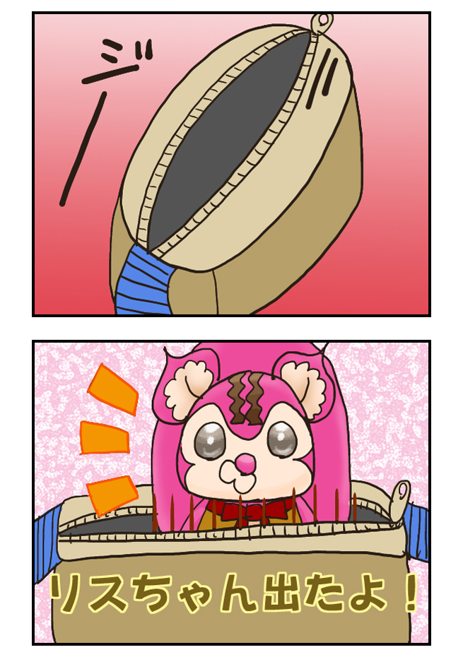 もちリスちゃんが、バックから、顔出したよ♪