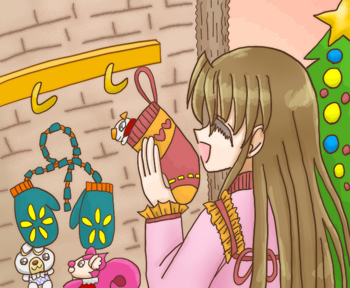 クリスマス絵、ドット(^^♪ 話題の、「ぴくせるすけゐらぁ」で、拡大(^O^)/ ドットでは、ない!! 一回してみたかったけど…(/・ω・)/ なめらか、ですね(=゚ω゚)ノ 私は、ドットのままが、いいですけどね…(*´ω`)ノ