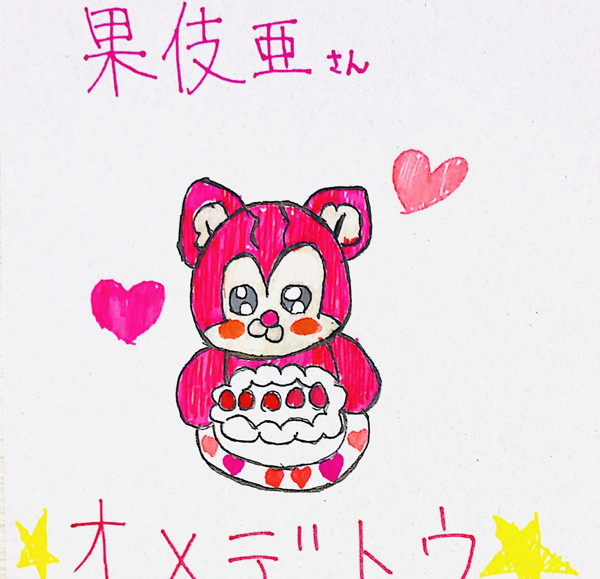 ![]() 2022年11月9日 ![]() 桃木 桃乃さんから、2枚も、イラスト頂きました(^^♪ 指で、描いた、ホワちゃんです!! 凄いです(*^▽^*)/指で、描くの大変なので… とっても、お上手ですね(*´ω`*)ノ☆ 目が、セクシーなのかな☆ 髪型、バッチリですね🎶 背景もいい感じで、とっても、可愛らしいです💕 桃木 桃乃さん、ホワちゃん、描いて下さって、 ありがとうございますー(*^^)v♡ ![]() 2枚目は、シュケンちゃんですね(^^♪ 紙に描いて下さったのですね、ありがとうございますー🎶 きょとんとした、表情が、とっても、可愛いですね(#^^#) 色も、バッチリあってます(=゚ω゚)ノ 丁寧に、描いて下さって、ありがとうです(*^^*)☆ ほっぺ、可愛いで、ございます(^O^)/ 色も、ハッキリしてて、いいですね(*'ω'*)☆ 桃木 桃乃さん、2枚も、描いて下さって、ありがとうございます(*- -)(*_ _)ペコリ とっても、嬉しいです🎵 2022年10月14日 ![]() 桃木 桃乃さんから、可愛いミイエを頂きました(^^♪ 桃木 桃乃さん、ついにデジタルなのですね(=゚ω゚)ノ アイビスで、指で、描いたそうで、凄いです!! 髪の毛特徴良く、とらえてますね🎶 キラ☆キラとした、背景も、とっても綺麗ですー(#^^#)/☆ 指で、描いたのに、しっかりカラーにして下さって とっても、嬉しいです(*´ω`*) 素敵な、ミイエを描いて下さって、ありがとうございました(o*。_。)o 2022年5月29日 ![]() 桃木 桃乃さんから、お誕生日プレゼントのイラストを頂きました(^^♪ もちもちリスちゃんとケーキ、手描きです(#^.^#)♡ 可愛いもちリスちゃんと、ハートのお皿にのった苺ショート🎵 手描きのハートと星の背景、とっても可愛いですね🎶 もちリスちゃんがとっても可愛く描いてありますね(*´ω`*)☆ ほっぺ赤いのも可愛いですし、瞳も可愛いです☆彡 とっても可愛く描いて下さって、桃木 桃乃さん、ありがとうございました(#^^#) |